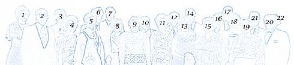 13 og 14: Ella og Aksel - 15 og 16: Elna og Kristian - 17 og 18: Herman og Gudrun - 19 og 20: Helga og Jakob - 21 og 22: Gunner og Else (bag Jakob)